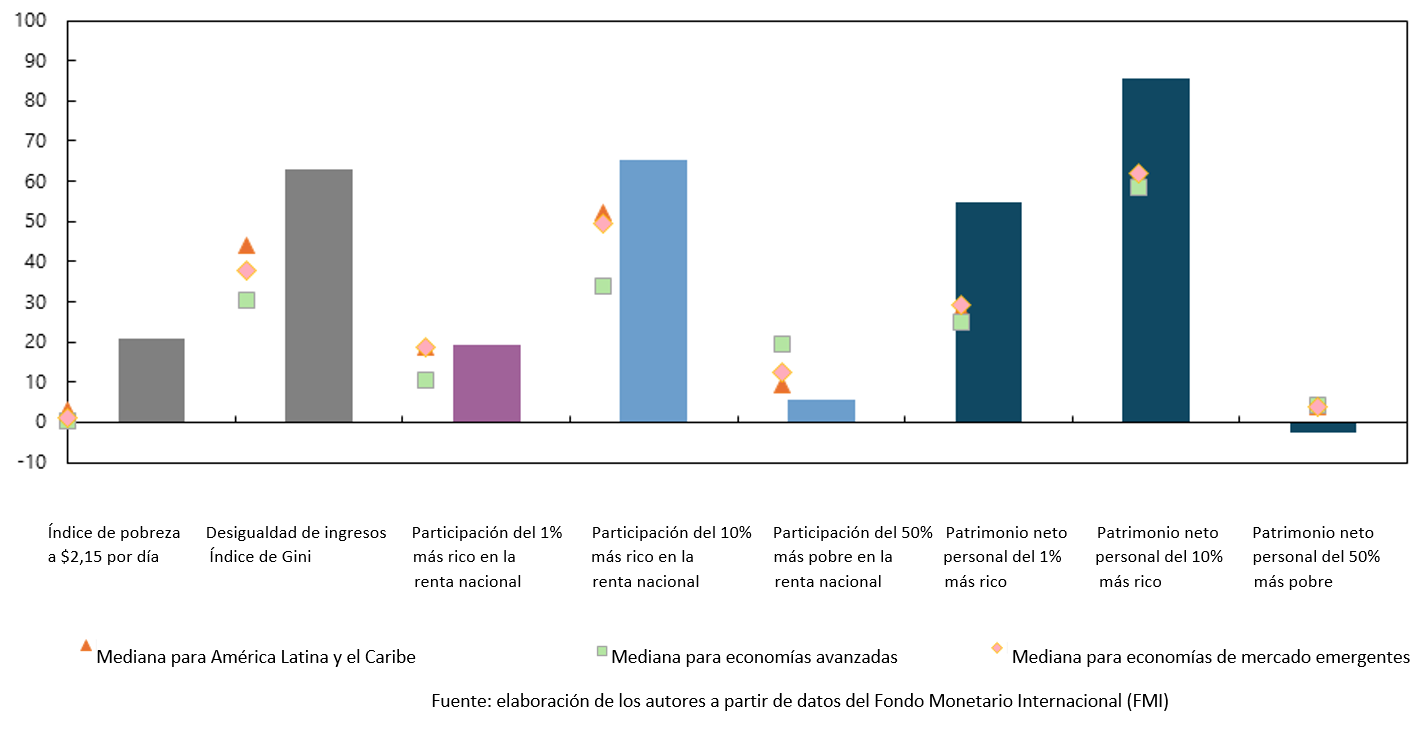 Entre las dimensiones menos desarrolladas pero más prometedoras de la cooperación Sur-Sur se encuentra la relación entre África y América Latina. La mayoría de los países de ambas regiones comparten desafíos socioeconómicos similares (gráfico), historias coloniales y retos de desarrollo. Sin embargo, la cooperación interregional ha sido esporádica. Sudáfrica se encuentra en una posición ventajosa para impulsar la cooperación entre ambas regiones, la cual trascenderá la diplomacia simbólica, gracias a sus vínculos históricos con América Latina.